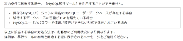 ですが、「MySQL5.5移行ツール」を利用することが出来ない条件のなかに